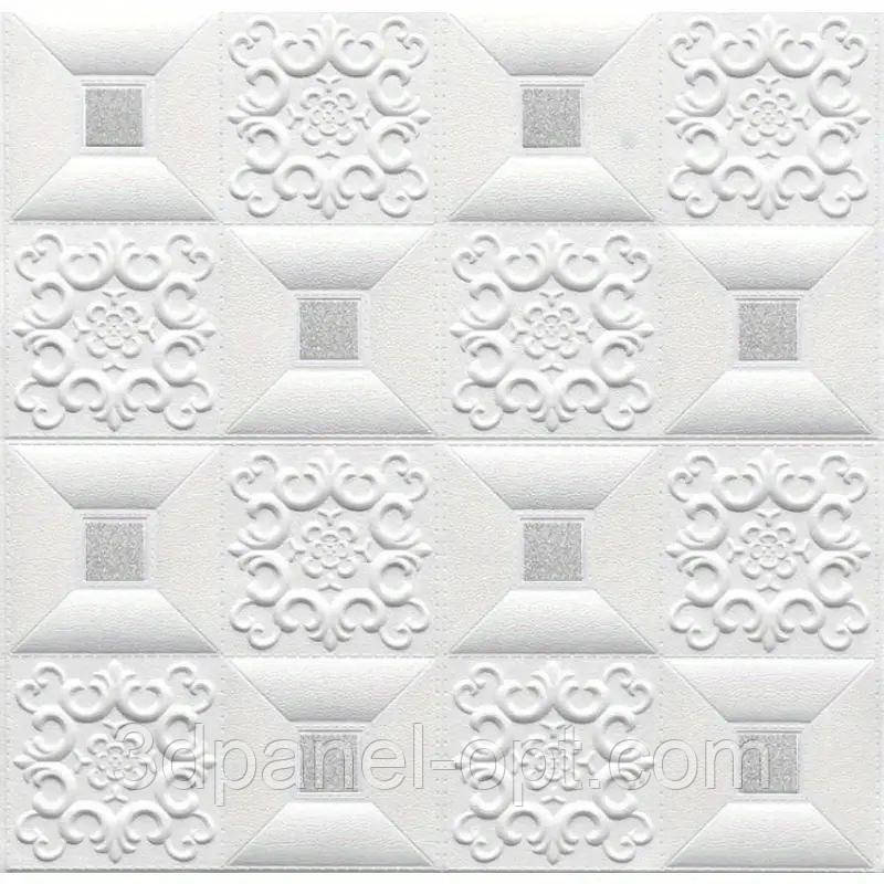 Самоклеюча 3D панель декоративна настінно-стельова біла фігури з сірими квадратами 700х700х3.5ммВ наявності